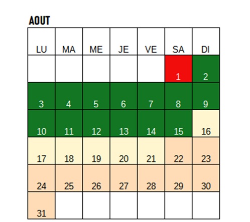 pour un minimum de quatre jours en moyenne saison, et
